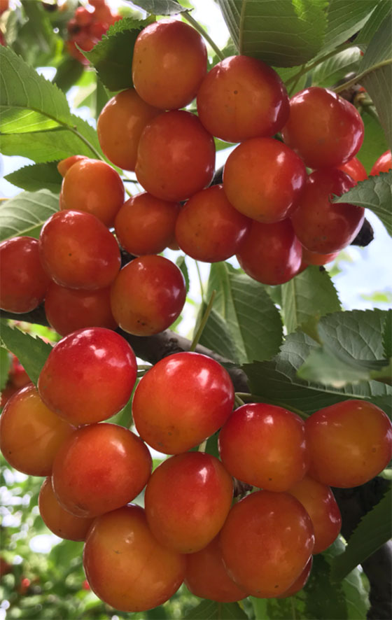 中熟、黄红色、脆甜型特色品种。果皮黄底红晕,果个中大,与先锋相近;口感硬脆、甘甜,风味独特,可溶性固形物含量达21.9%,可高达39%;树势中庸,早果性、丰产性好。