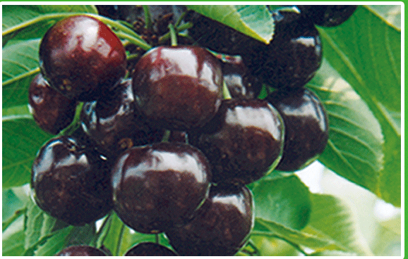 为紫黑色品种,在我场6月上旬采收,果实为紫红色,延迟至6月10日后采收,果皮为紫黑色。成熟一致,单果重9克左右,果肉较硬,品质佳,丰产性好;优选大果水晶、红蜜、黄蜜等。