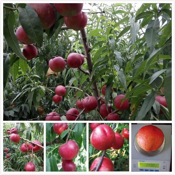 福美(秀美)成熟期为8月中下旬,糖度18~24度,是油桃中很甜的品种,果肉白色,硬度大,脆甜,离核,树上挂果时间长,均果重175克,达293克,果面全红色,自花结实,产量高。