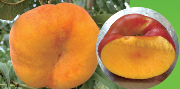 金蟠2号:8月中下旬成熟,特大果形黄蟠桃,单果重220-500g,果肉厚,味甘甜,果面鲜黄带红脸,自花桔实,产量高。